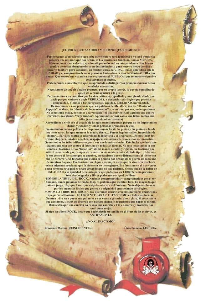 Rock contra el fascismo Publicado el 05/10/202105/10/2021 por anuskavk en Noticias VaKa se suma al manifiesto Rock contra el fascismo, promovido por Óschar Sánchez (Lujuria) y Fernando Madina (Reincidentes).